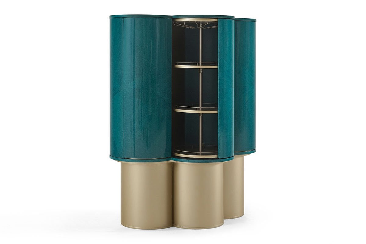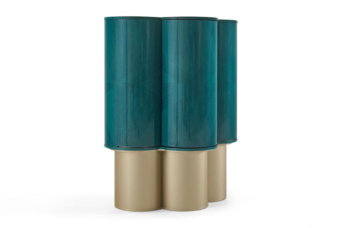 Azura, turkuazın kadim anlamından ilham alır. Lounge masası ve yemek masası olmak üzere iki versiyondan oluşan bu tasarım, yüzeyinde kullanılan turkuaz kaplama ile nazarlık kültürüne zarif bir atıfta bulunur. Bar modülü, damla motifinden esinlenen formuyla bereketi, sürekliliği ve yaşamın akışını simgeler. Yüzyıllardır koruyucu ve dengeleyici bir sembol olarak görülen turkuaz renk, Azura'da yalnızca estetik bir tercih değil; mekâna sakinlik, iyi his ve bütünlük taşıyan bir anlam katmanıdır.
