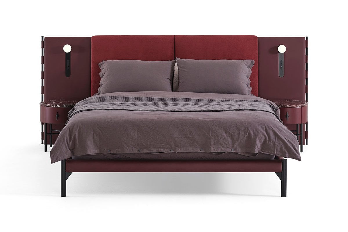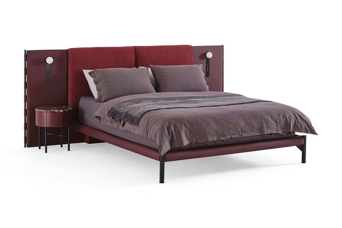 Marzen Yatak Odası, Mardin'de bereketin simgesi olan bordo üzüm ve nar tonlarından ilham alan rengi, yumuşak ve akışkan formlarla buluşturur. Mermer dokular ve mat siyah metal detaylar, yuvarlak ve oval çizgilerle dengelenerek sakin ve rafine bir atmosfer yaratır. Yatak, yumuşak yaslanma hissi veren başlığıyla konforu merkeze alırken; entegre başucu lambası ve USB girişi modern ihtiyaçlara estetik bir çözüm sunar. İnce metal ayaklar tasarıma hafiflik katar. Tek ve çift çekmeceli komodin seçenekleriyle şifonyer, dolap ve makyaj masasında da aynı akıcı tasarım dili sürdürülür. Farklı dolap modül ve ölçü alternatifleri esnek kullanım sunarken, makyaj masalı dolap modülü depolama ve kişisel alanı tek bir yapı altında birleştirir.