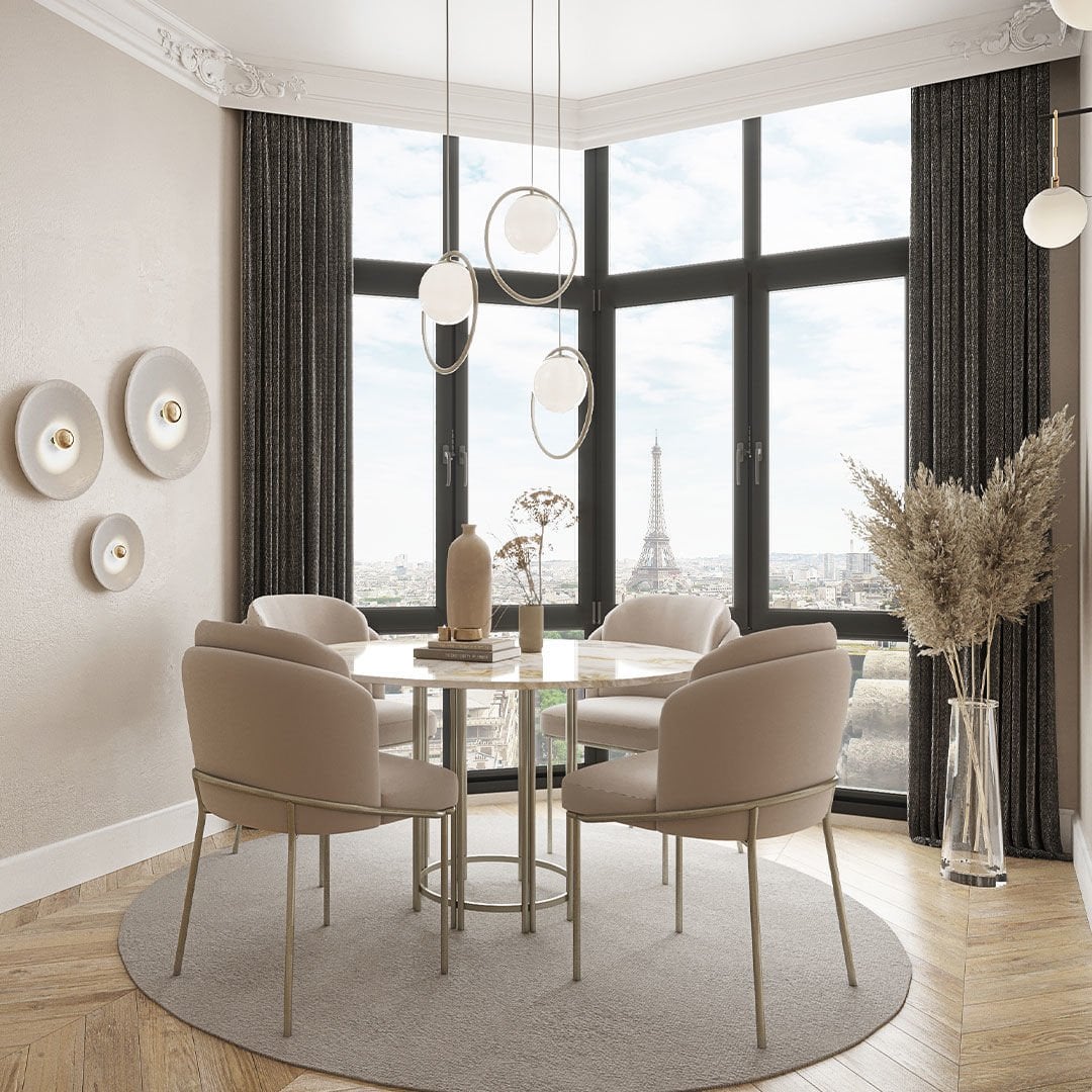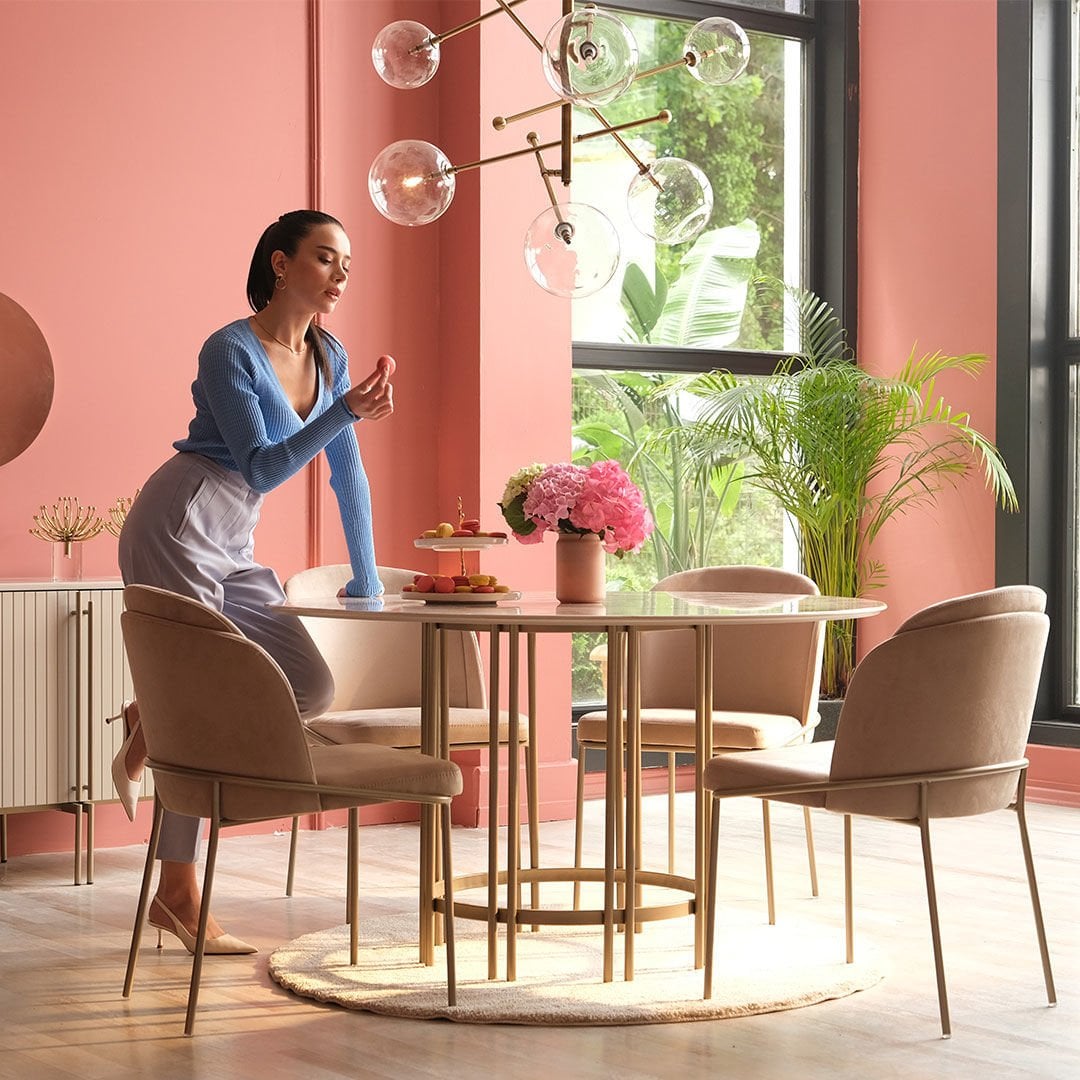 Dairesel formları metalik detaylarla birleştiren Blush Yuvarlak Masa yaşam alanlarına zarafeti ve şıklığı getirmeyi amaçlıyor. Hayatı kolaylaştırırken sadeliği ile de iç mekanlara ışıltı katıyor.