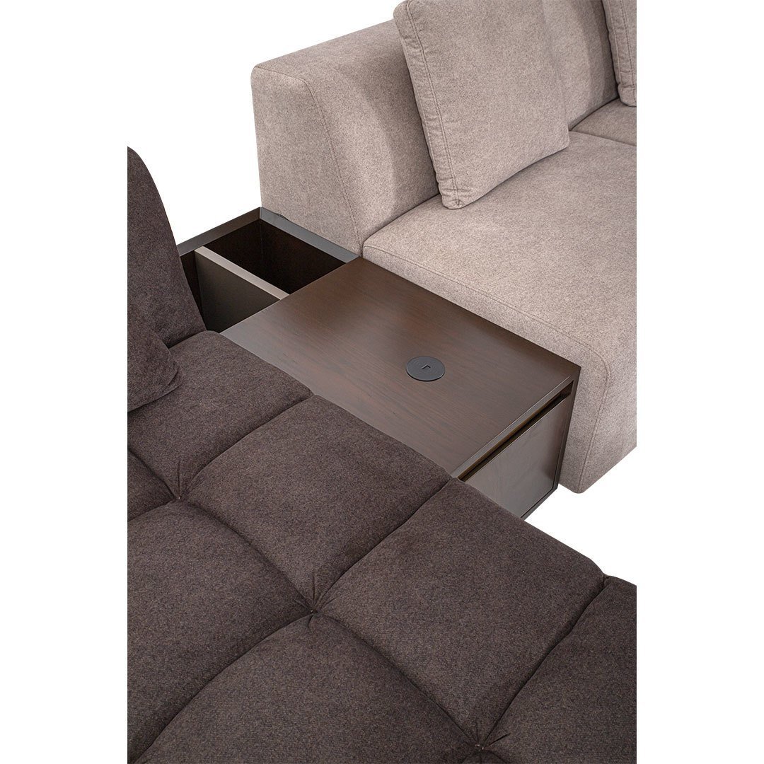 Mekanizma: Chocolate köşe koltuk modelinin ara sehpalarında usb girişi ve kablosuz şarj aleti özelliği bulunmaktadır.