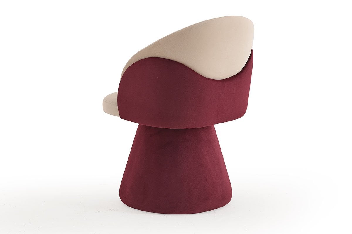 Larissa, laleden ilham alan form diliyle zarafet ve dengeyi bir araya getirir. Yumuşak kıvrımları ve yukarı doğru yükselen silueti, lalenin doğal duruşunu çağrıştırır. Ne narin ne sert; tam kararında bir denge sunan bu tasarım, oturma deneyimini sakin ve davetkâr bir hisle tamamlar.
