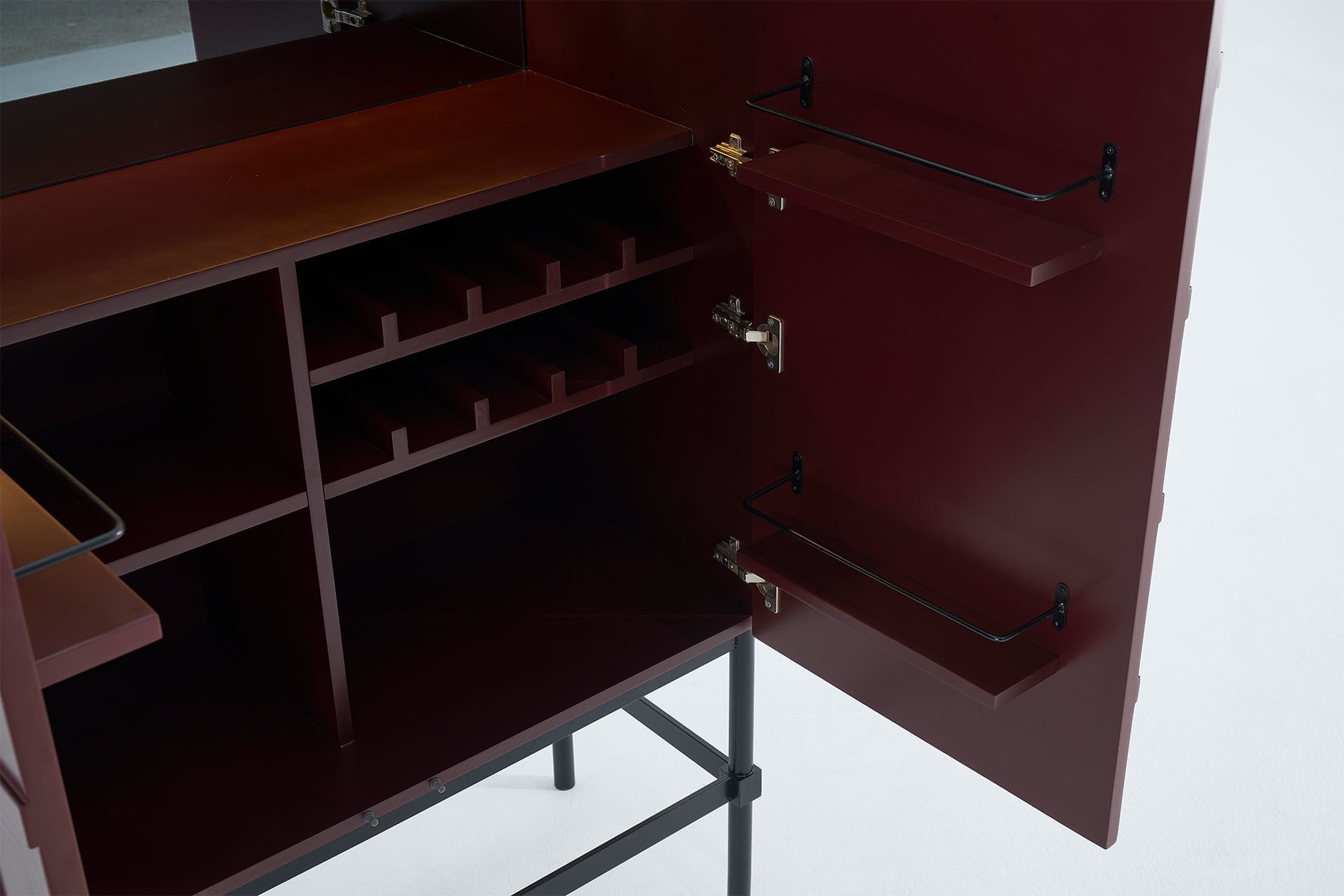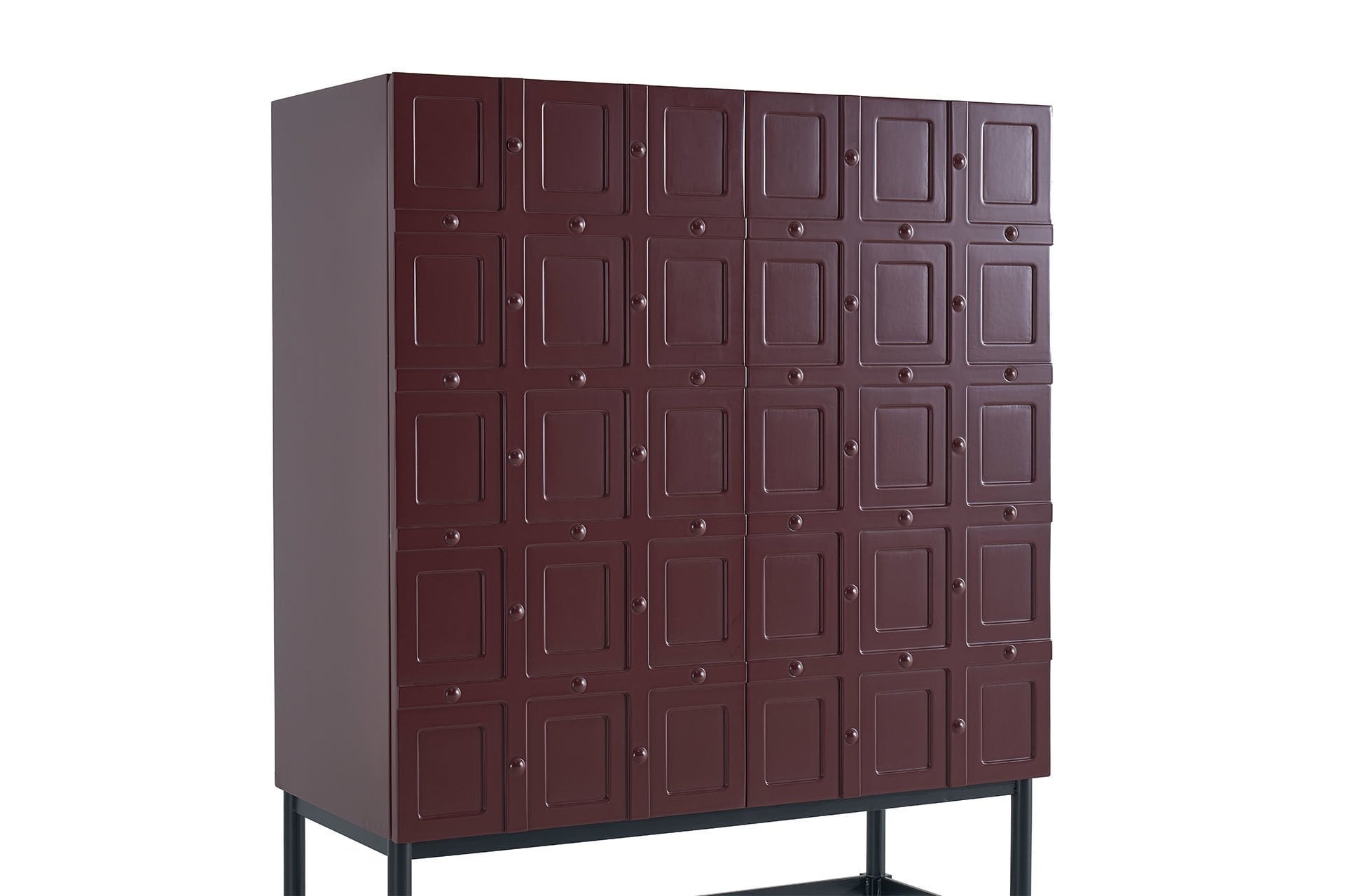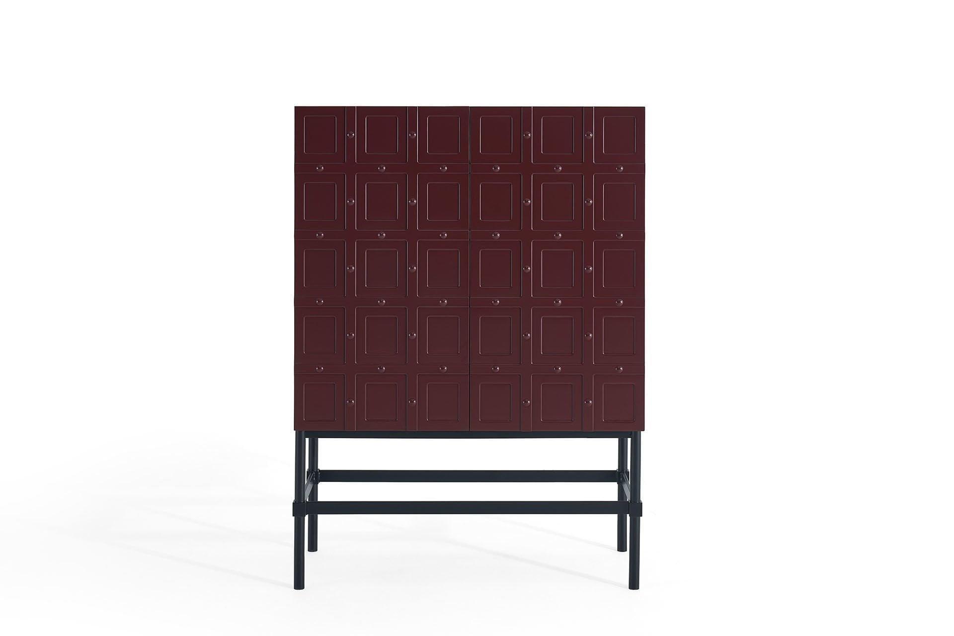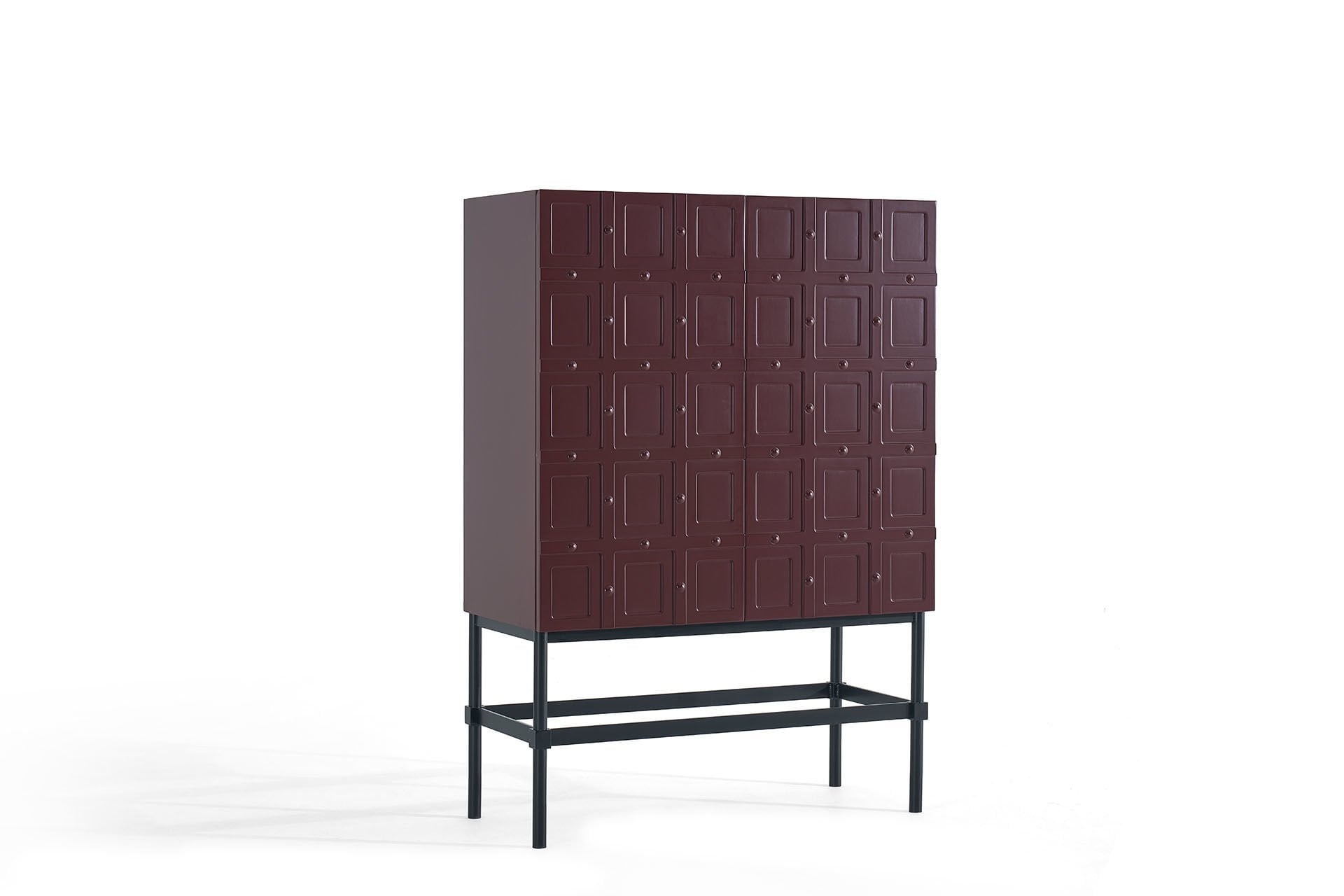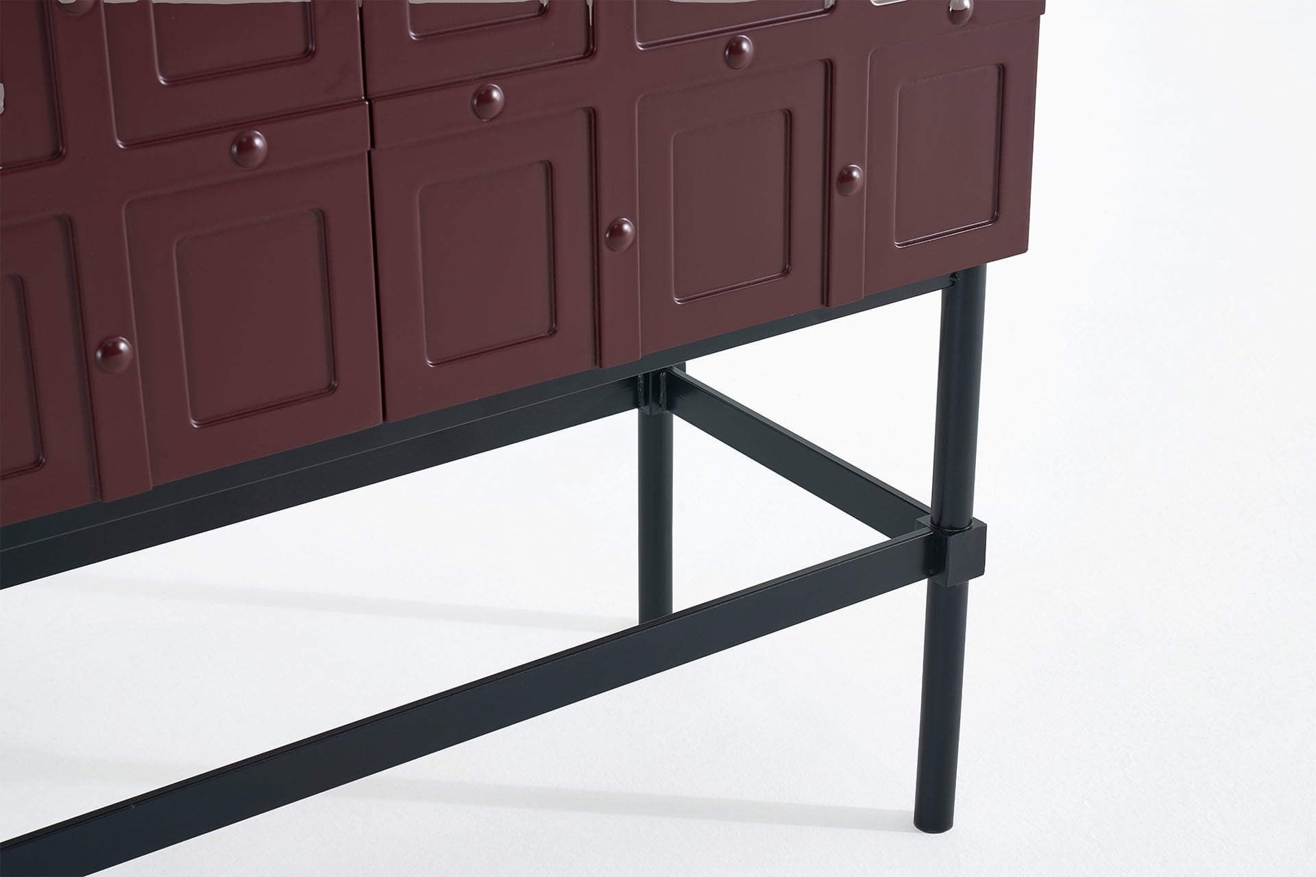 Ürün Malzemesi: Gövdesinde koyu bordo mat lake, ayakları ise mat siyah elektrostatik boyalı metal malzemeden üretilmiştir.