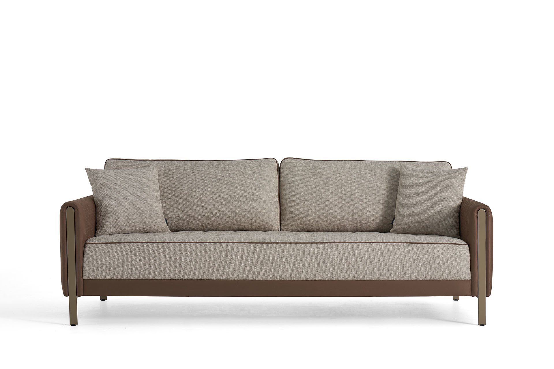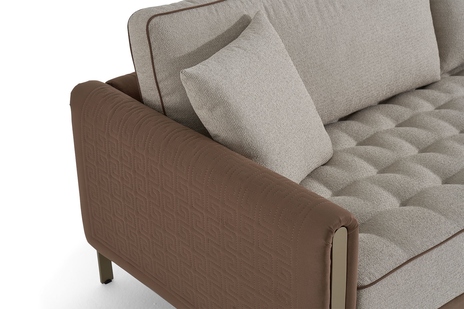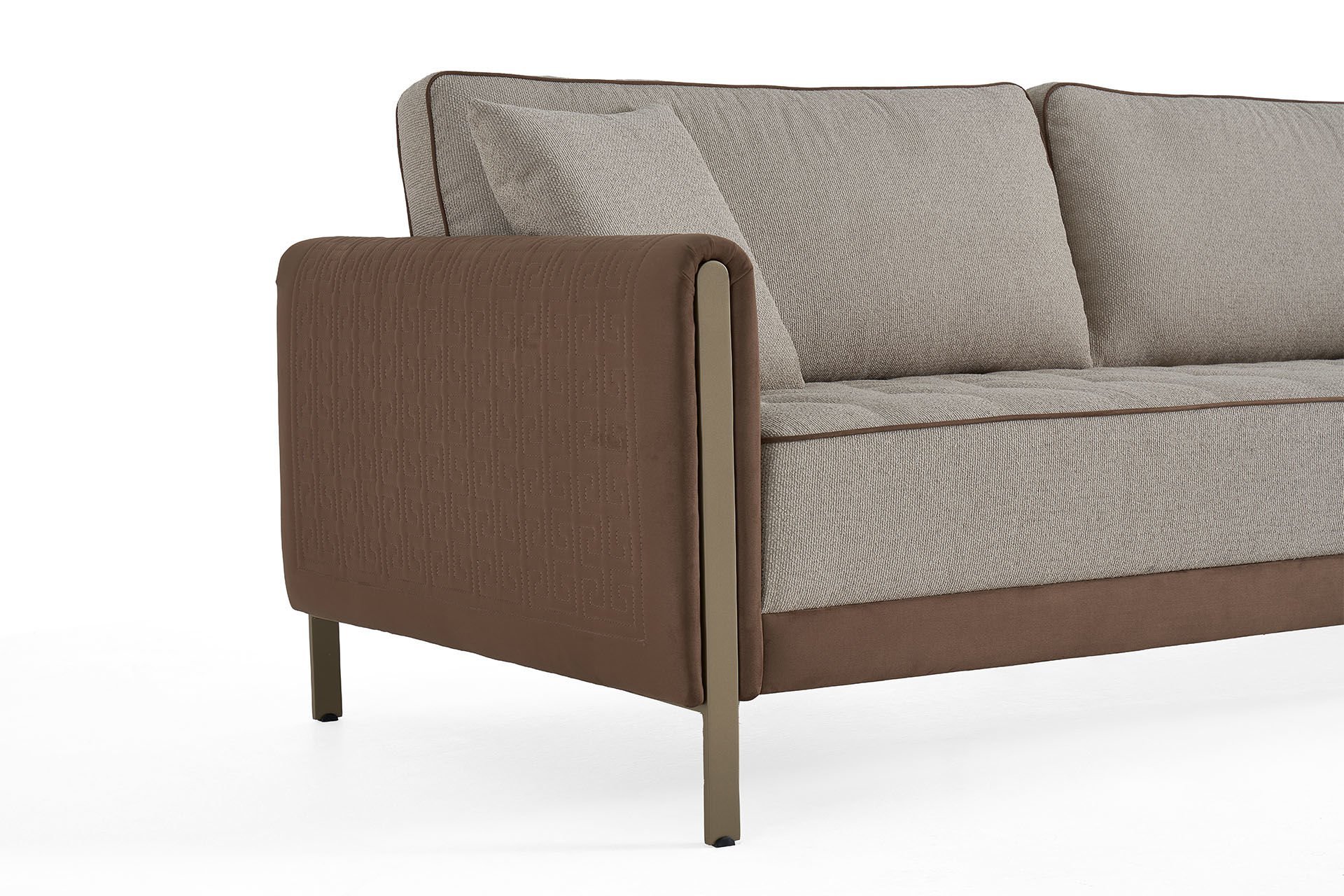 Kumaş Özelliği: Kollar ve arka iskelet kumaşı süet olup, oturum ve iç minderlerinde keten kumaş kullanılmıştır.