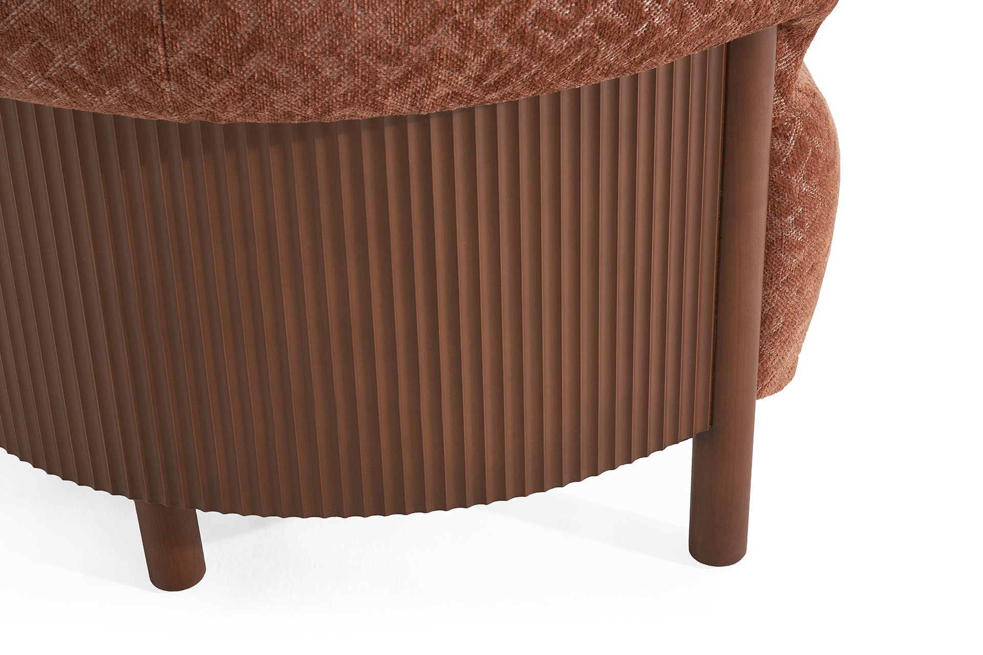 Mardin’in mistik silueti ve zarif sütunlarından ilham alan Shilya Berjer, sabit sırt formuyla sağlam ve güven verici bir duruş sergiler. Sırtını saran dikey çizgili ahşap parça, taş işçiliğinin çağdaş bir yorumu olarak dikkat çeker. Döşeme kol detayı modern konforu yansıtırken, "dinlenme yeri" anlamına gelen Shilya, Mardin’in huzur veren atmosferini evlere taşır. Sütunlardan ilham alan zarif detaylarıyla geçmişle geleceği buluşturan modern bir miras sunar.