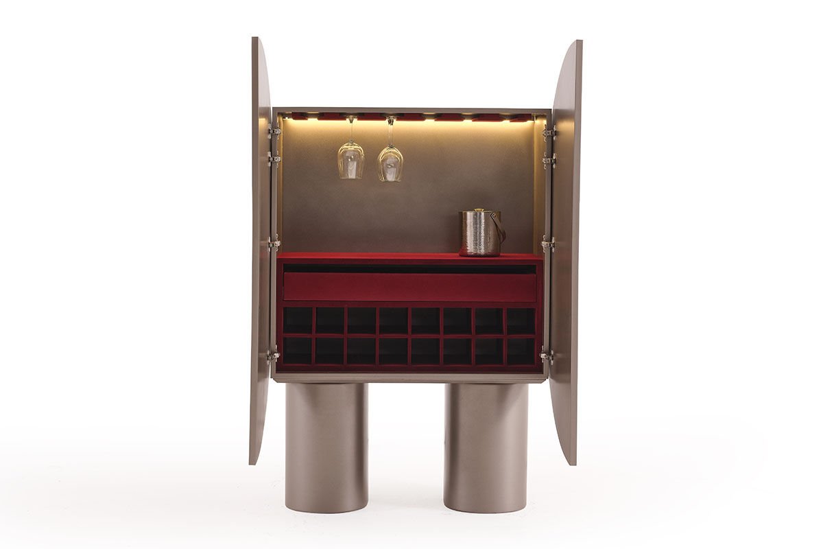 Sole, Mezopotamya'nın kadim güneşinden ilham alan formuyla ışığın merkezden yayılan gücünü mekâna taşır. Heykelsi duruşu ve dengeli oranlarıyla bar kavramını estetik bir odak noktasına dönüştürür. Zamansız tasarımı, geçmişin sembolik gücünü modern yaşam alanlarına yorumlar.