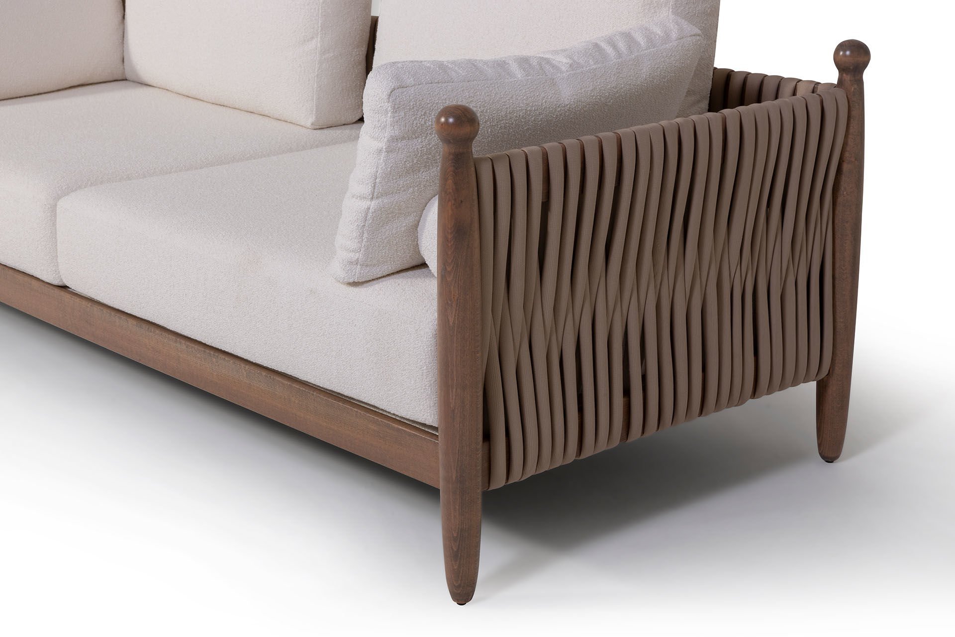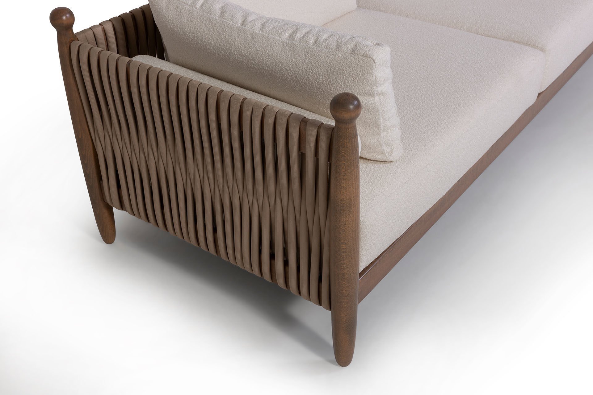 Sıcak yaz gecelerinde hayat damlarda devam eder. Mezopotamya kültüründe, özellikle yaz aylarında, teraslarda ve dış mekanlarda kullanılan geleneksel bir mobilya olan Taht, zamanla bölgenin kültürünü ve yaşam tarzını simgeleyen bir parça haline gelmiştir. Taht, geleneksel yaşamın bir simgesi olarak, huzuru, paylaşımı ve birlikteliği temsil eder. Taht Outdoor koleksiyonu, işte bu kültürden ilham alarak tasarlandı. Koleksiyonun alüminyum iskeleti, dış mekâna uyumlu olacak şekilde tasarlanırken, el örgüsü işçiliği zarafetiyle geleneksel konforu modern bir dokunuşa taşır. Kırlentler, kufi sanatından esinlenen desenlerle modern bir yorum kazandı.
