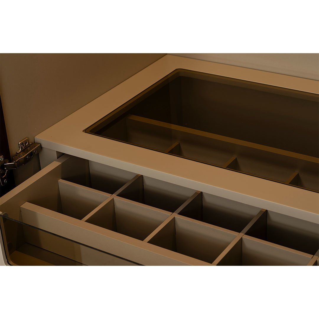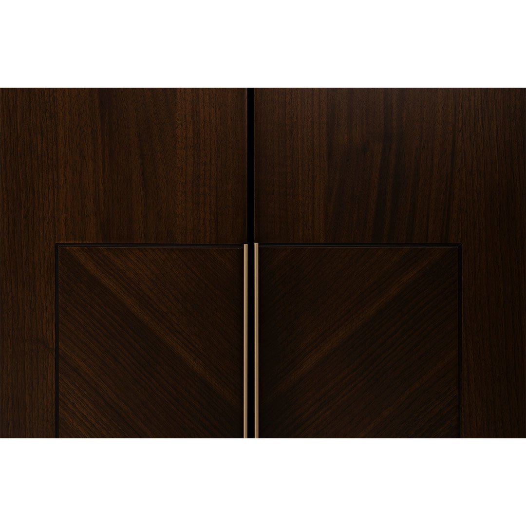 Ürün Malzemesi: Doğal freze amerikan ceviz kaplama, kumsal ipek mat lake malzemeden üretilmiş olup metal kısımlarda kum beji elektrostatik boyalı metalden yararlanılmıştır.